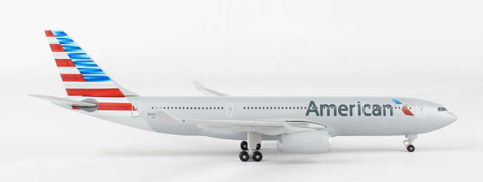 This die-cast metal airplane model comes in 1/500 scale with landing gear no stand. Model is approximately 4 5/8 inches long with 4