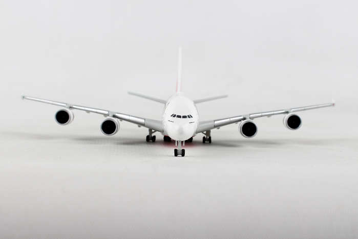 This die-cast metal airplane model comes in 1/500 scale with landing gear no stand. Model is approximately 5