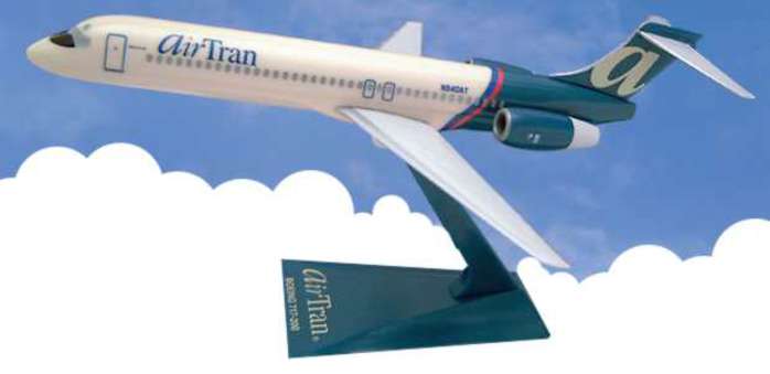 Pre-decorated plastic snap-fit display models. Models are printed, not decaled, and include plastic stand. Model Size: Wing Span 5 1/2", Length 7 1/2"
