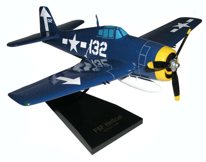 This high quality replica is handcrafted from mahogany and comes with a wooden base. Length is 13 3/8" and wingspan is 18 1/2".