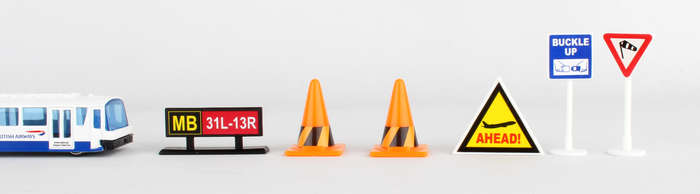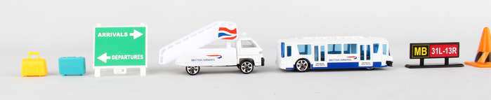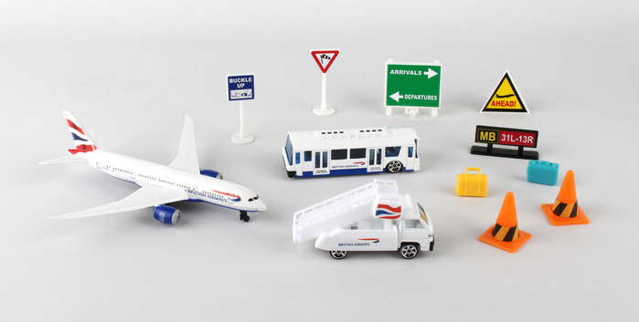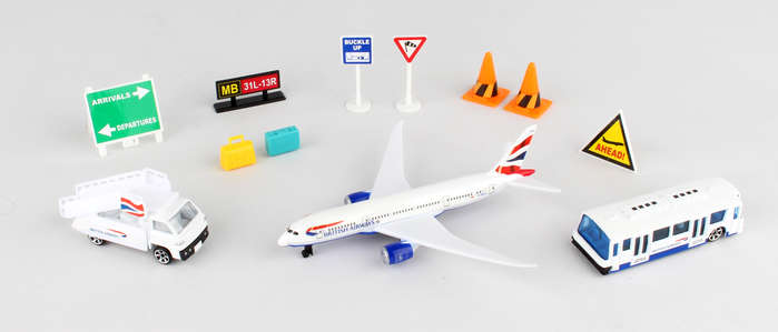 Your kids will have hours of enjoyment from this colorful, durable diecast metal and plastic playset with official licensed insignias. Set includes a plane and a variety of vehicles and signs. Ages 3+