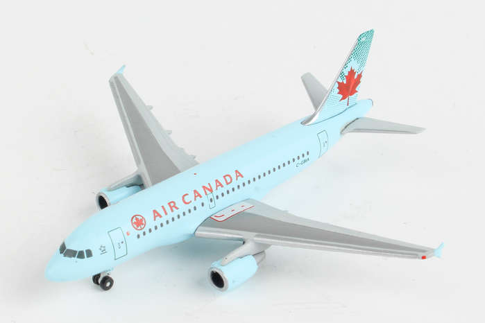This die-cast metal airplane model comes in 1/500 scale with landing gear no stand. Model is approximately 2 5/8 inches long with 2 5/8 inch wingspan.