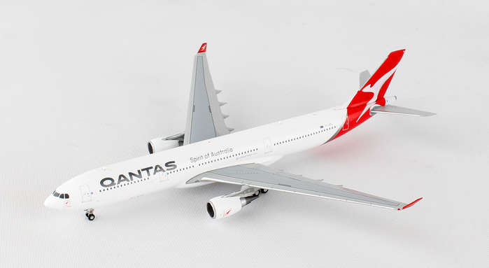 This die-cast metal airplane model comes in 1/400 scale with landing gear no stand. Model is approximately 6 Model Size: Wing Span 5 3/4", Length 6"