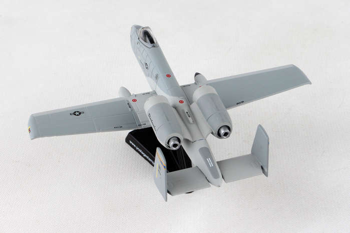 This Die-cast metal airplane model comes in 1:140 scale with plastic stand and is approximately 4 5/8 inches long with 5 inch wingspan. Adult Collectible ages 14+ The A-10 Thunderbolt II, more commonly known by the nicknames "Warthog" or "Hog", is a single-seat cantilever low-wing all metal monoplane used for close air support by the U.S. Air Force. The aircraft has superior loiter capabilities and maintains excellent maneuverability at low speeds and altitude because of its large wing area. The high wing ratio also allows short takeoffs and landings, and its simple design allows operations from forward airfields with limited facilities. The A-10 was designed for short-term response against enemy armored vehicles. The main feature of the plane is a nose-mounted 30mm GAU-8/A Avenger Gatling-type cannon. One of the most powerful aircraft cannons ever flown, it fires large depleted uranium armor-piercing shells. The 163rd Fighter Squadron is a unit of the Indiana Air National Guard 122nd Fighter Wing located at Fort Wayne, Indiana. They changed their names from Marksmen to Blacksnakes in 1997 for a less aggressive undertone. They have been operating A-10's since 2010.