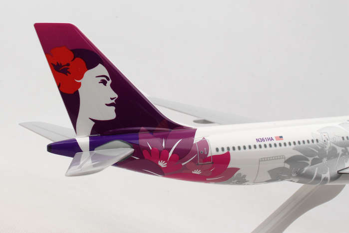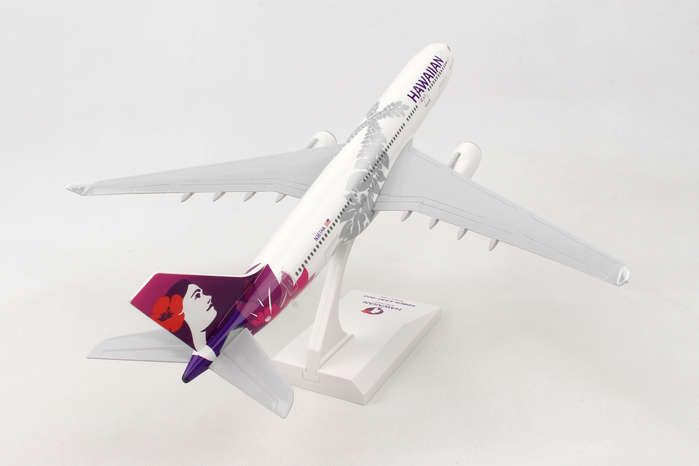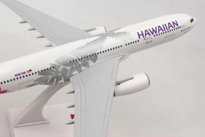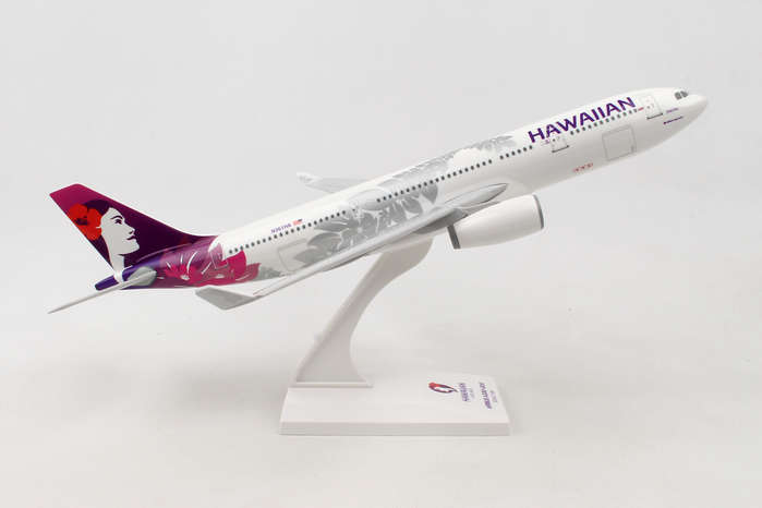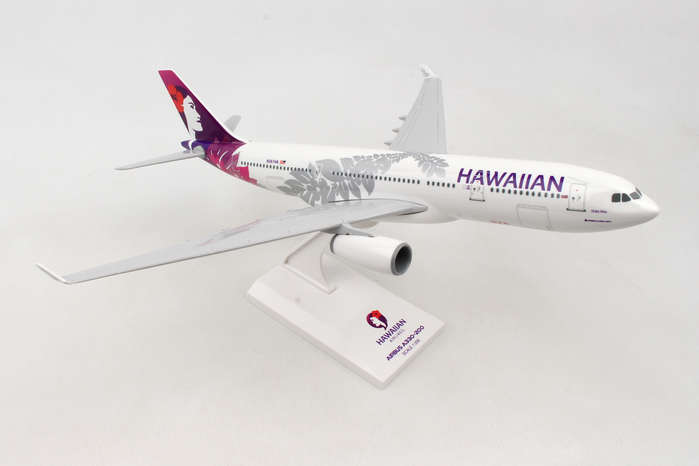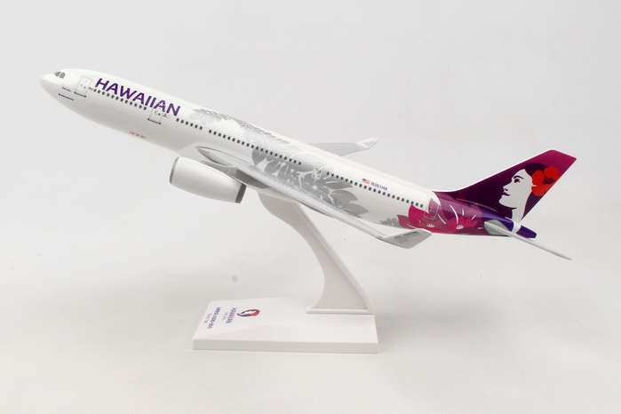 Comprising superior quality, substantial, solid injection molded plastic components with a simple snap-fit design that allows for easy assembly without the need for glue, this SkyMarks 1/200 Scale Hawaiian Airbus A330-200 - Registration N361HA - measures approximately 11-7/16-inches long with an 11-9/16-inch wingspan and comes complete with a Display Stand. An accurate, true-to-scale reproduction of the actual aircraft, this Hawaiian Airbus A330-200, which is manufactured as an officially licensed product, is great for collectors and features authentic, highly detailed graphics and markings. According to Airbus, the revolutionary, fly-by-wire digitally controlled Airbus A330-200 can be configured to seat 210 to 250 passengers in a typical layout and as many as 406 passengers in a higher density arrangement, providing carriers with scheduling flexibility on routes up to 7,250 nm. Appreciated by the airlines for its commonality with other aircraft within the A330 Family and other current Airbus aircraft, the Airbus A330-200 enables pilots to readily change from one aircraft to another as necessary with a Common Type Rating, also making it quicker and easier for airlines to deploy flight crews.