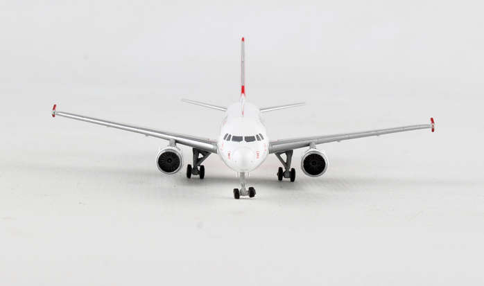 1/400 scale die-cast metal airplane with gear. Model is approx 3 3/4 inches long with 3 1/4 inch wingspan. Model Size: Wing Span 3 1/4", Length 3 3/4"