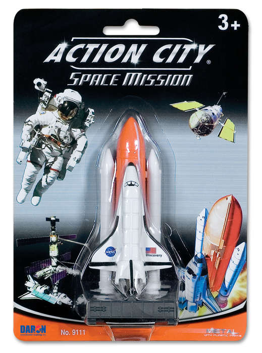 These Space Mission individually packaged toys and playsets are authentic representations of spacecraft past and present. Includes space shuttle on launch pad.