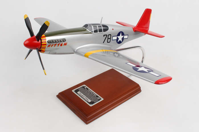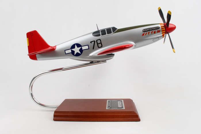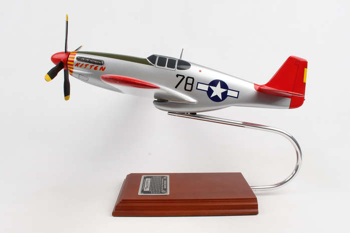 This high quality replica is handcrafted from mahogany and comes with a wooden base and a plaque signed by Charles McGee WWII Pilot. Dimensions are 16"(L) X 13.50(H) X 18.50" (Wingspan). The P51C Mustang was affectionately nicknamed "Kitten" and piloted by Tuskegee Airman, Col. Charles E. McGee. McGee flew 409 combat missions over 1,600 hours during his 30-year Air Corps career; the highest three-war total in the United States Air Force history. McGee is credited with shooting down 110 enemy aircraft without losing a single American bomber under his escort.< Although McGee was segregated during his stellar military career his exemplary performance and flight record culminated in the integration of African American Pilots and inspired social change and equality in the Air Force. For his distinguished military service McGee was honored with: The Distinguished Flying Cross with two Oak Leaf Clusters, The Bronze Star, The Army Commendation Medal, The Air Medal with 25 Oak leaf Clusters, The Air Force Commendation with Oak Leaf Clusters, Presidential Citation, and in September 2009 he was awarded The Air Force Association's Lifetime Achievement Award.